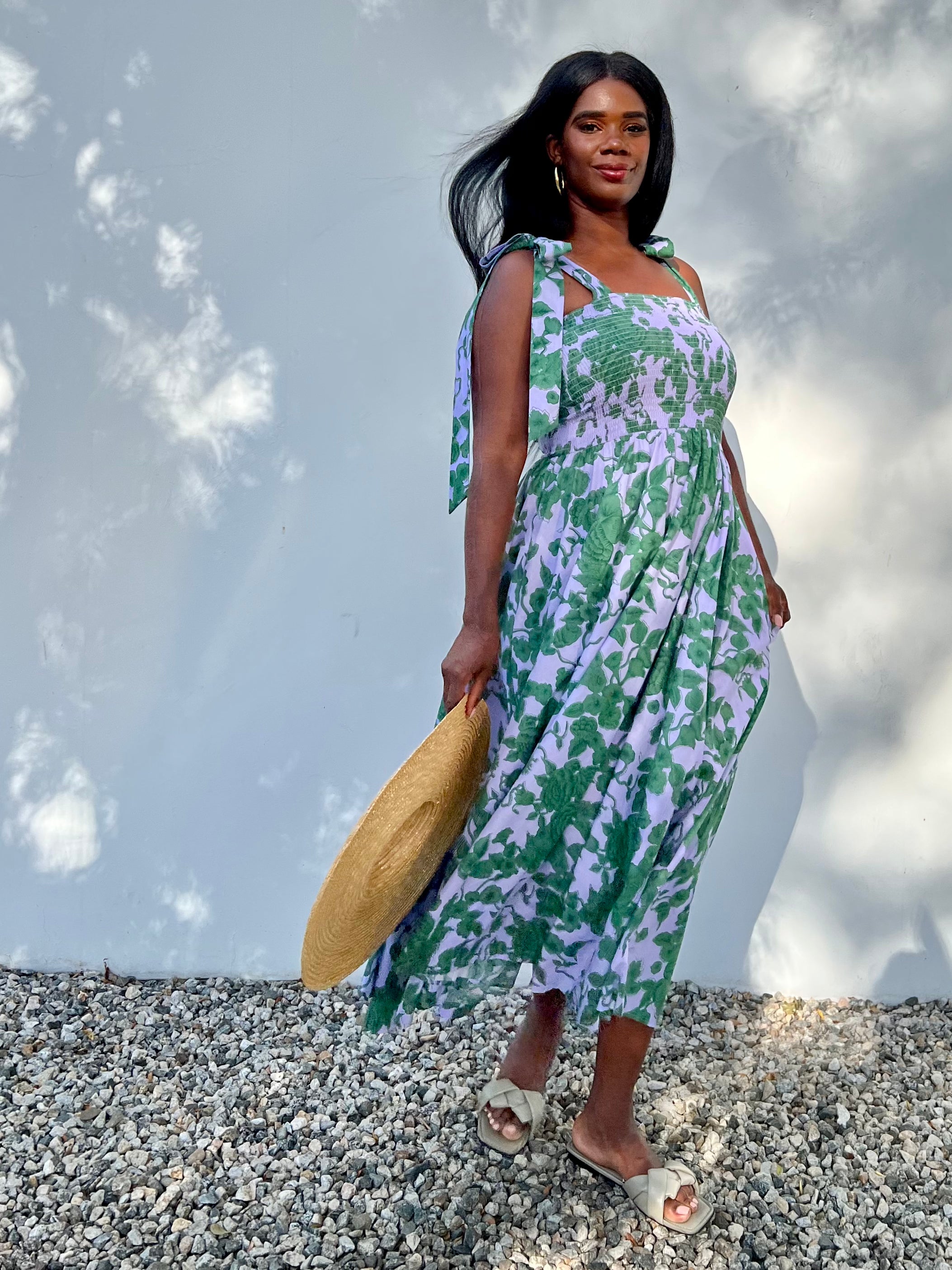 Brooke Floral Midi Sundress Lilac And Green Floral Baacal